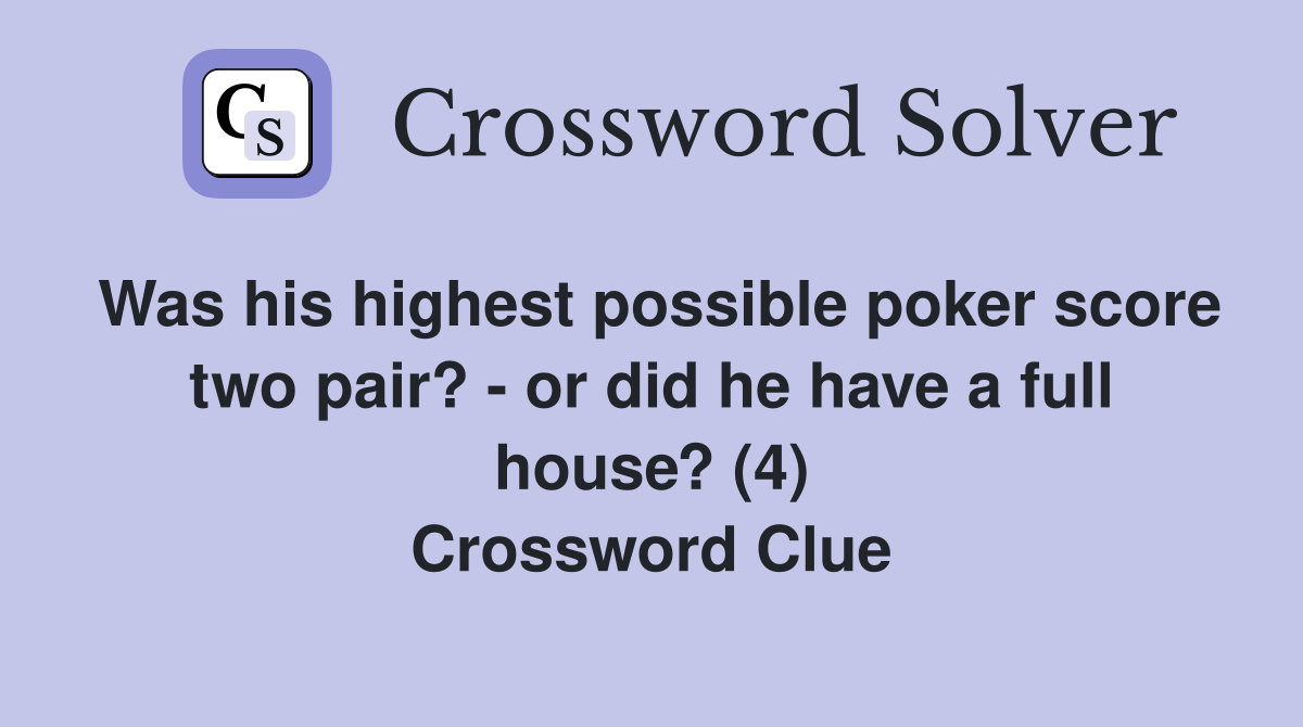 Here are some of the images for Poker Players Pass Crossword Clue that we found in our website database.