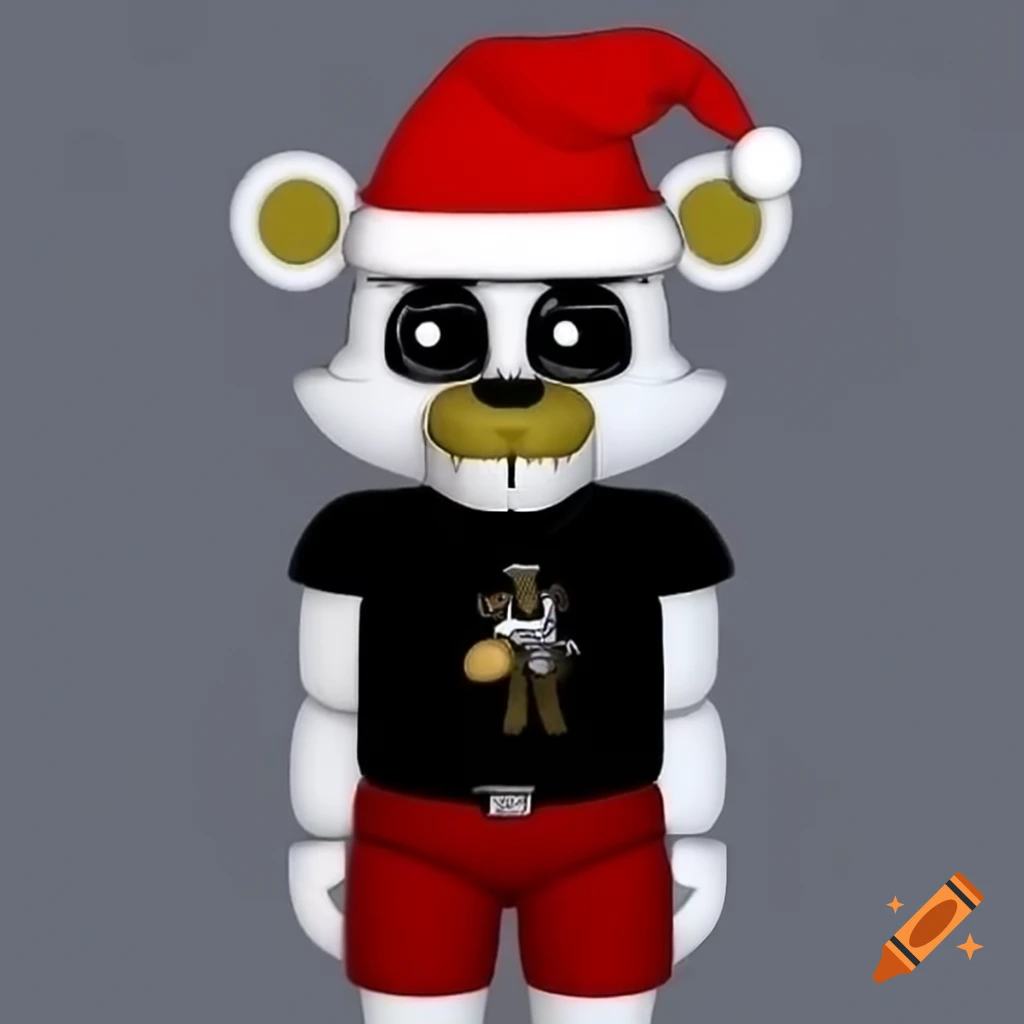 Polar bear character from Five Nights at Freddy #39 s wearing Santa hat and