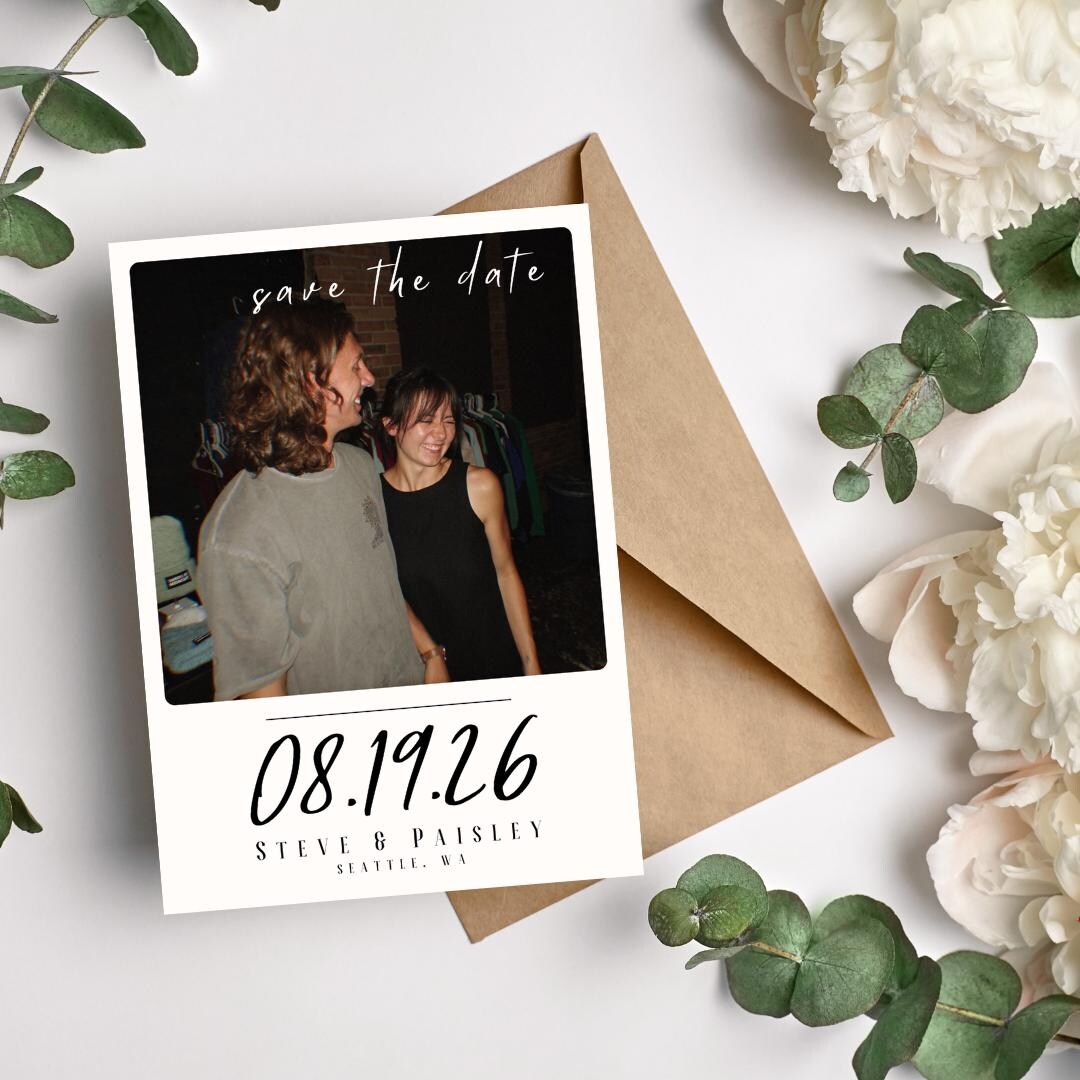 Customizable Polaroid Save the Date Digital Template 1 Photo 1 Side