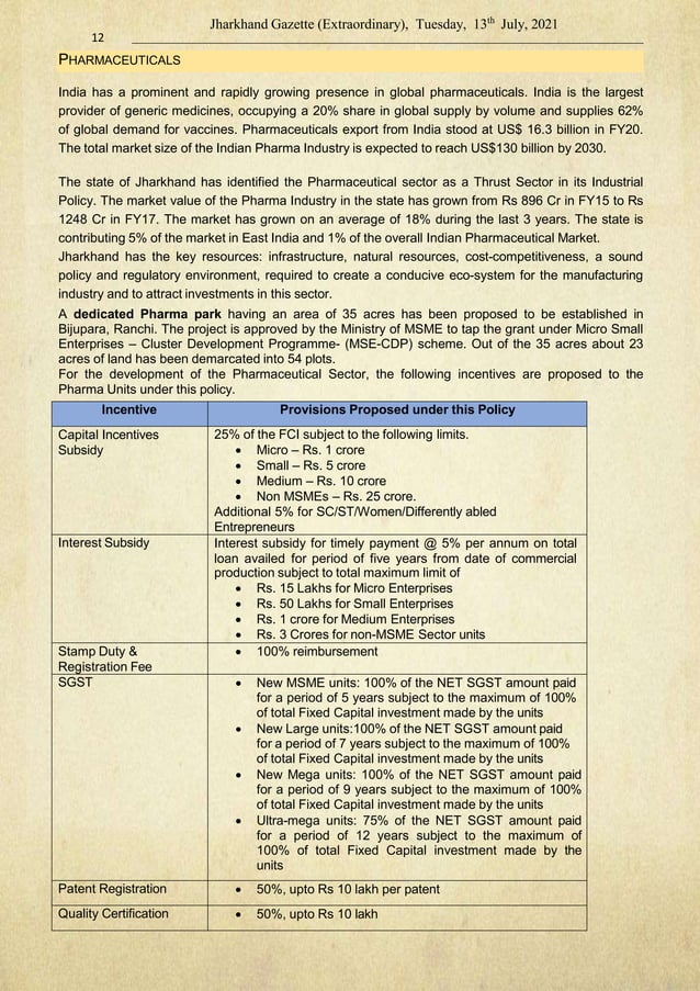 jharkhand industrial policy 2021 pptx Commodities Economy