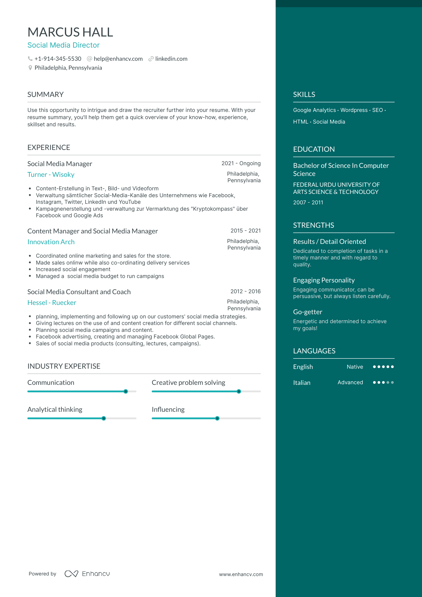 Social Media Director Resume Examples Guide for 2023 (Layout Skills