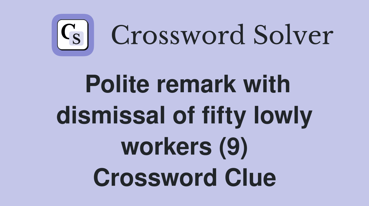 Polite remark with dismissal of fifty lowly workers (9) Crossword