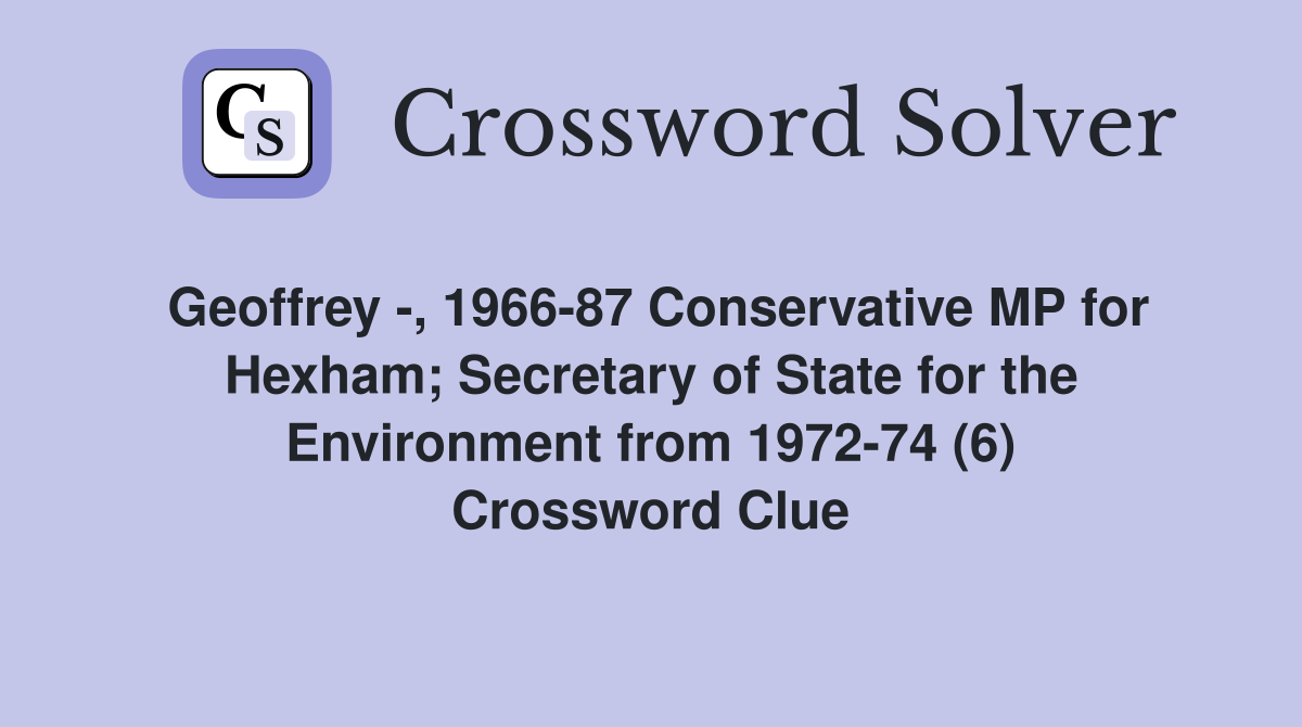 Geoffrey 1966 87 Conservative MP for Hexham Secretary of State for