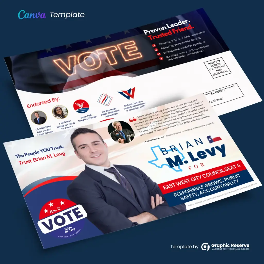 Editable Canva Template for Political Campaign Direct Mail Postcards