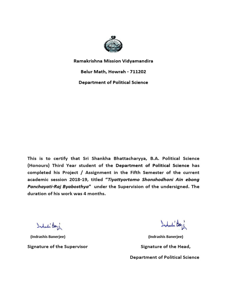 Political Science Certificate PDF Government Of India Academic Degree