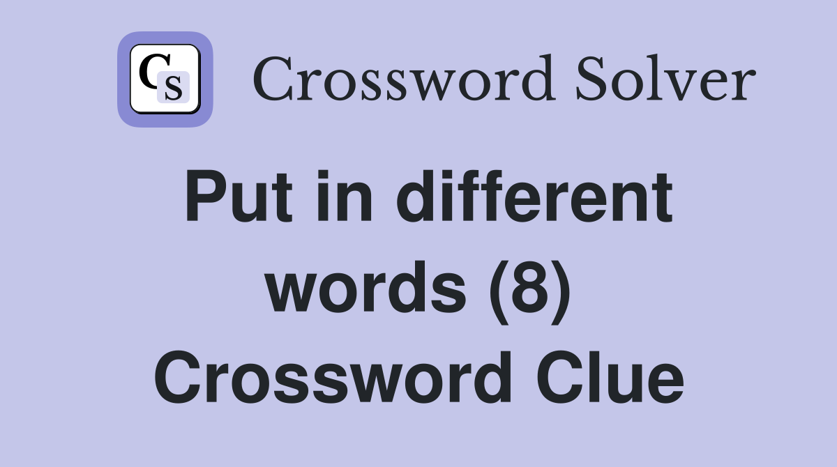 Put in different words (8) Crossword Clue Answers Crossword Solver