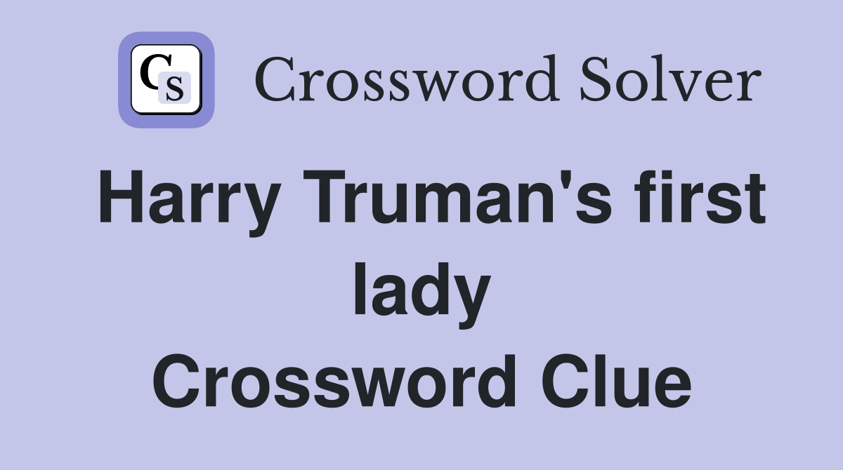 Harry Truman #39 s first lady Crossword Clue Answers Crossword Solver