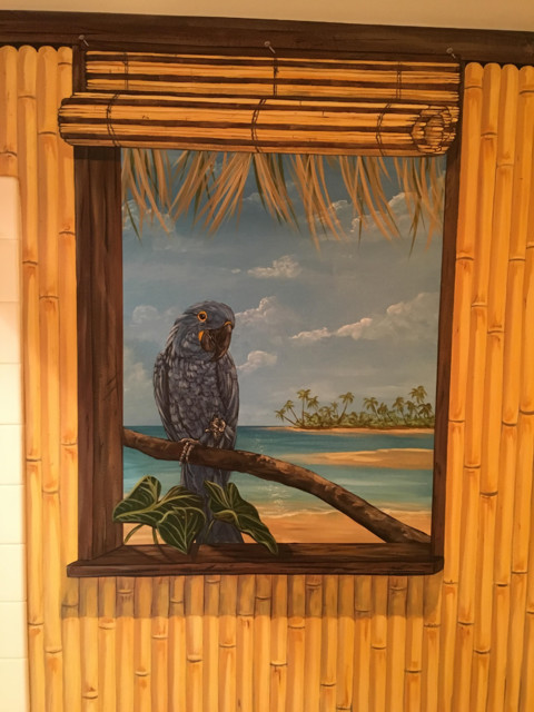Polynesian Themed Mural thoughout a bathroom hand painted by Tom