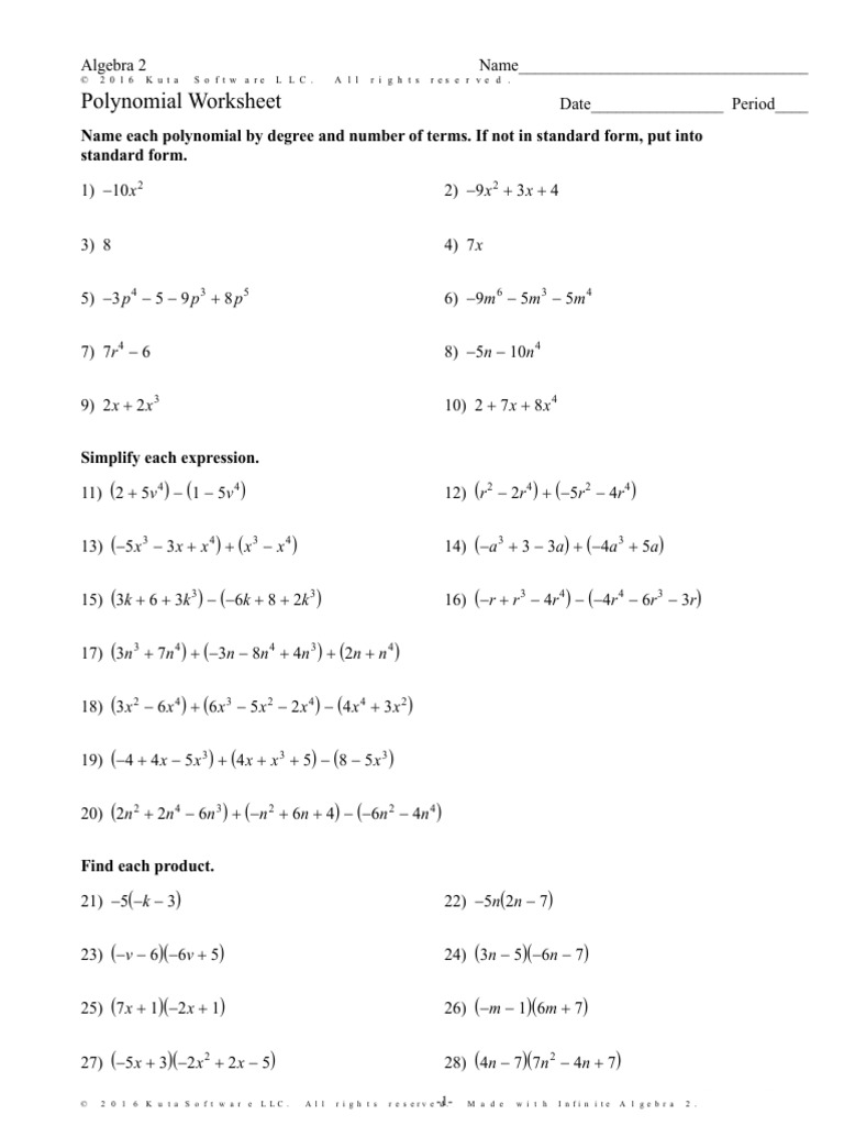 17 Polynomial Worksheets Printable Free PDF at worksheeto com
