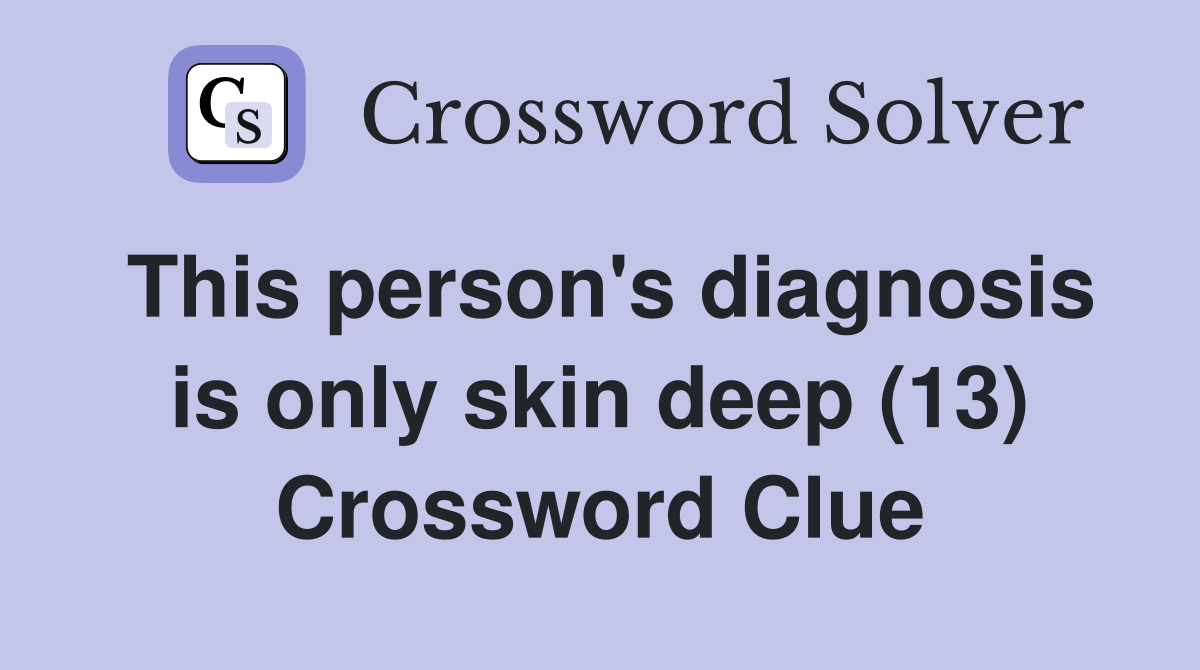 This person #39 s diagnosis is only skin deep (13) Crossword Clue Answers