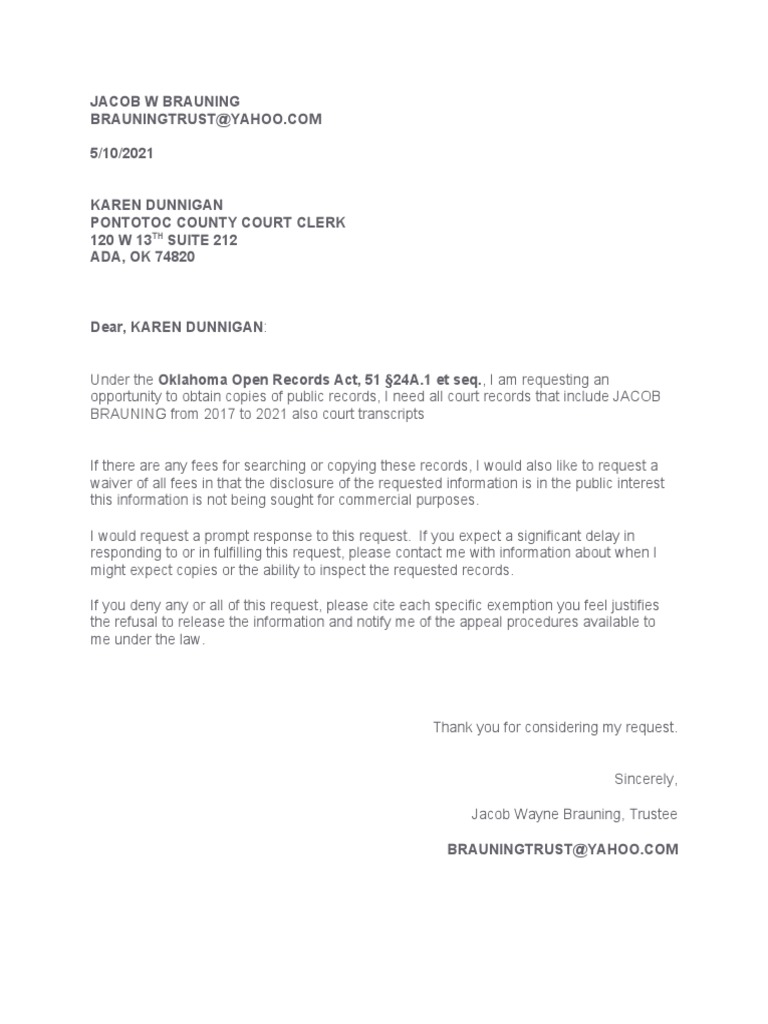 Pontotoc County Court Clerk Records Request Exhibit 010 PDF Fraud