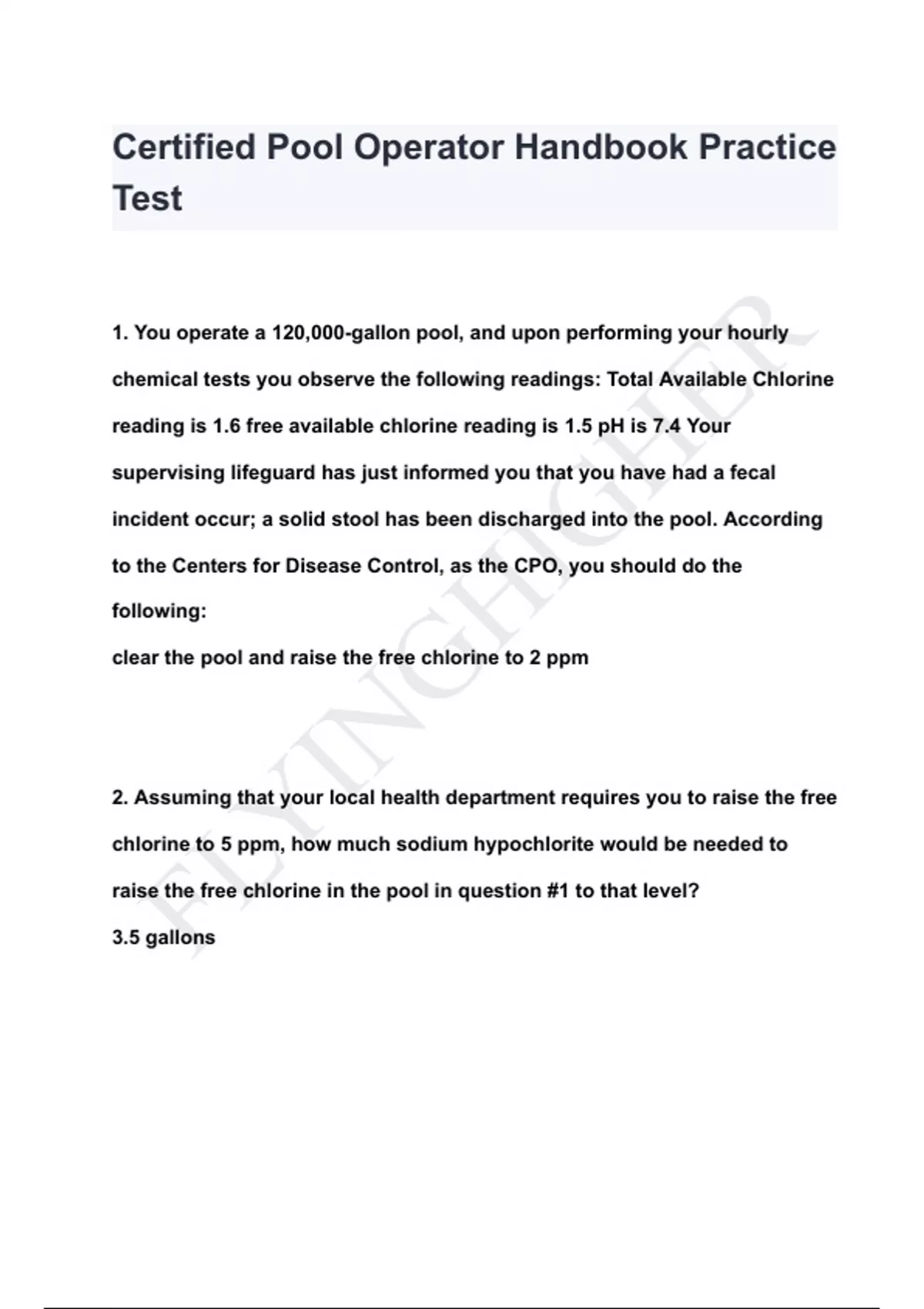 Certified Pool Operator Exam 100% Correct Questions and Verified