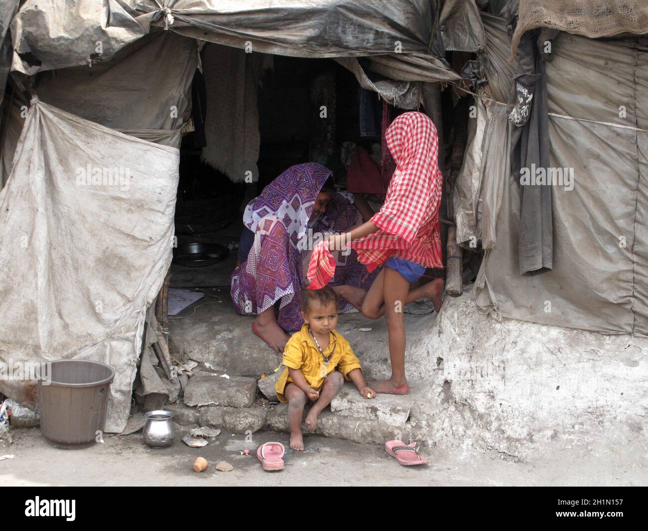 People Living in Poverty Along the Canals of Manila Philippines Stock