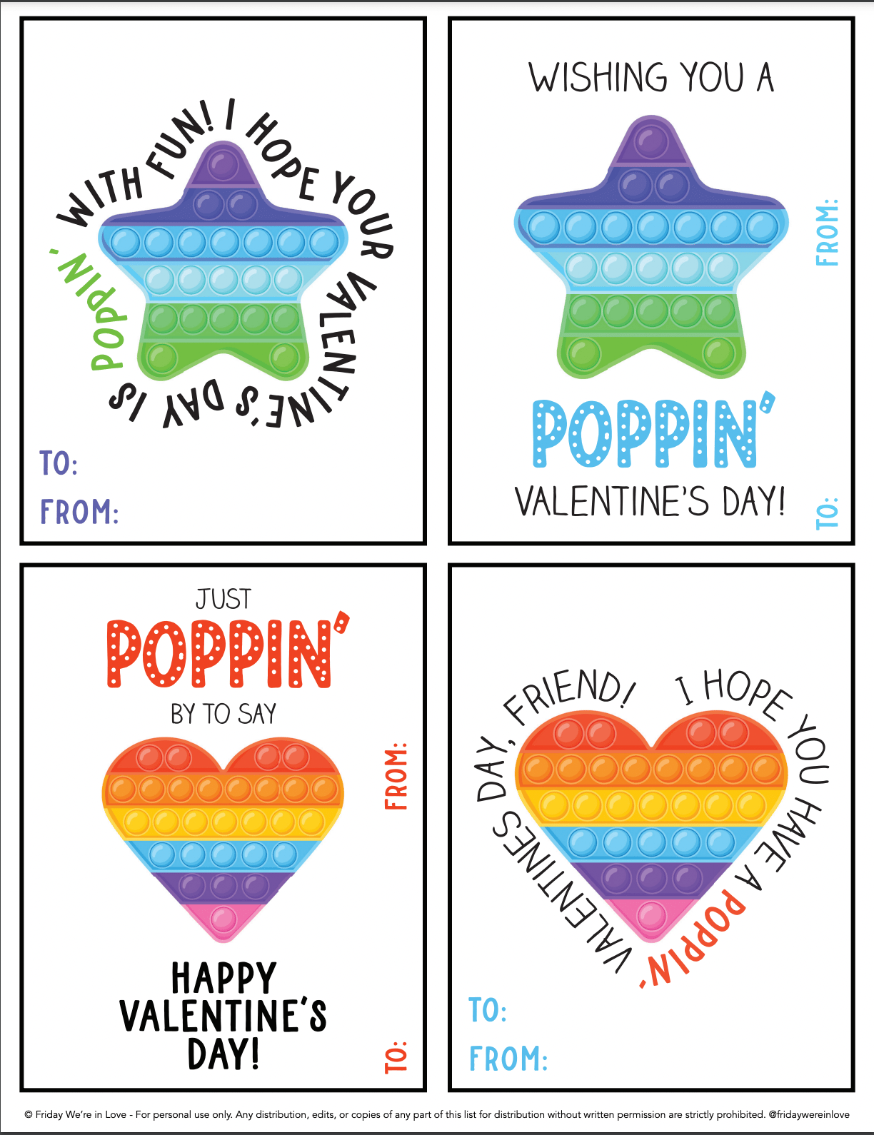 Free Printable Pop It Valentine Cards (8 Colorful Versions)