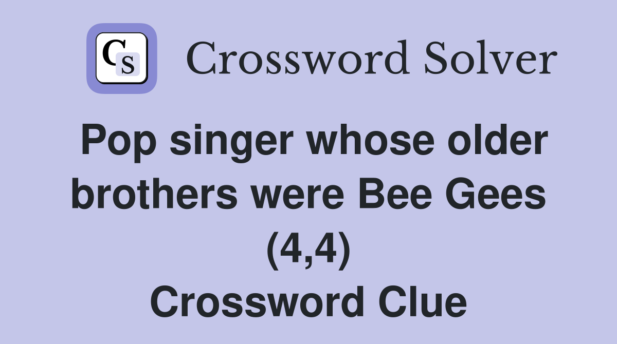 Pop singer whose older brothers were Bee Gees (4 4) Crossword Clue