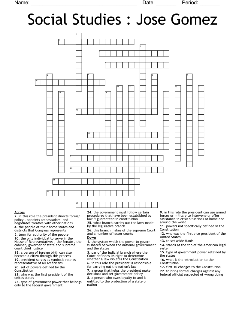 Social Studies : Jose Gomez Crossword WordMint