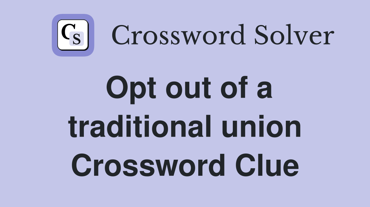 Opt out of a traditional union Crossword Clue Answers Crossword Solver