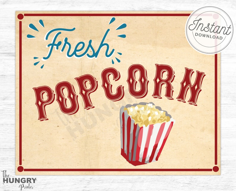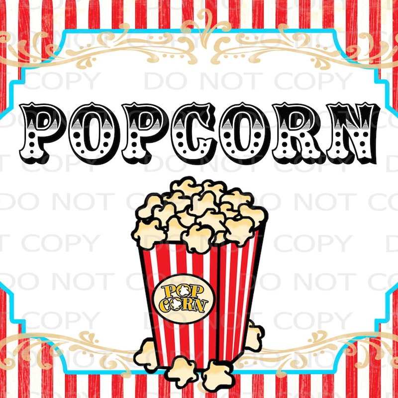 Popcorn Sign DIY Instant Download Carnival Sign Printable Etsy