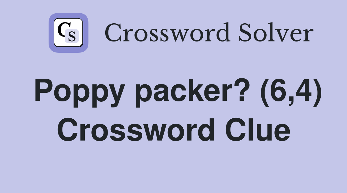 Poppy packer? (6 4) Crossword Clue Answers Crossword Solver