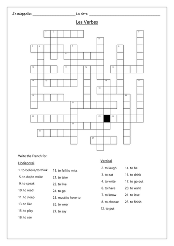 FRENCH CROSSWORDS Teaching Resources