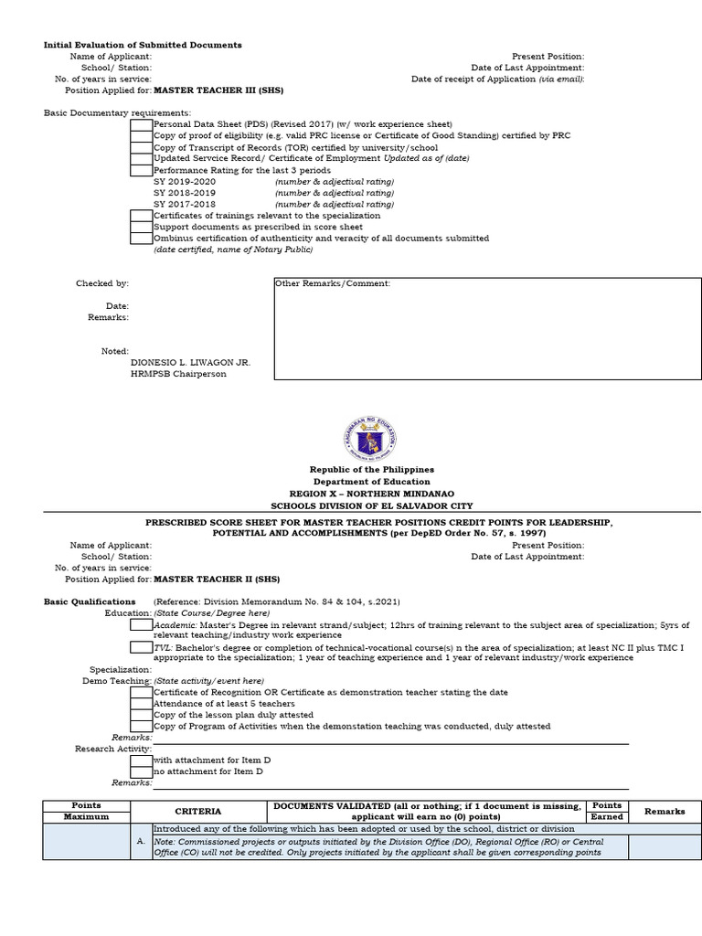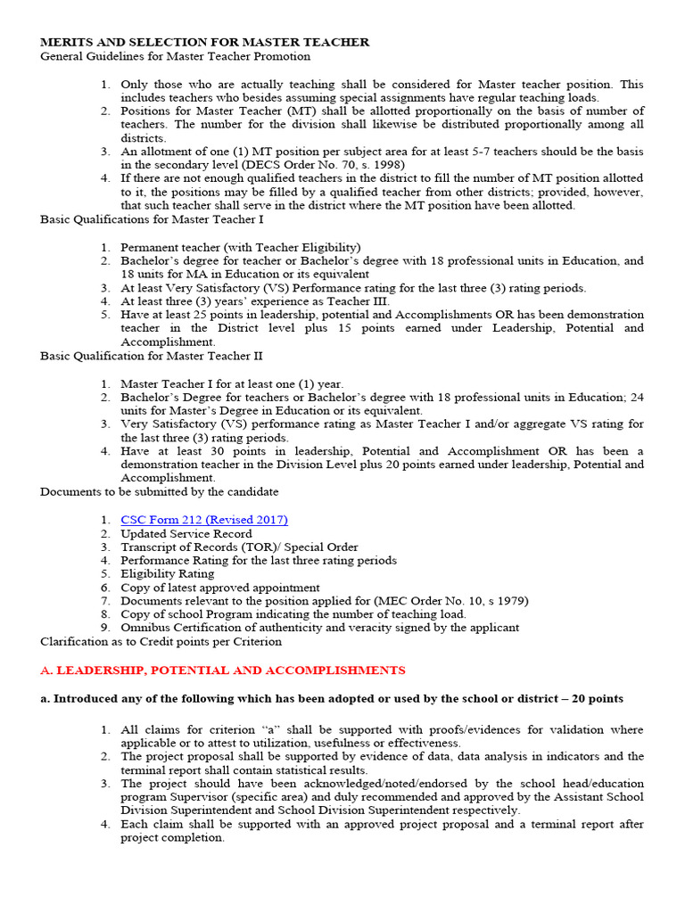 MERITS AND SELECTION FOR MASTER TEACHER 2 PDF Academic Degree