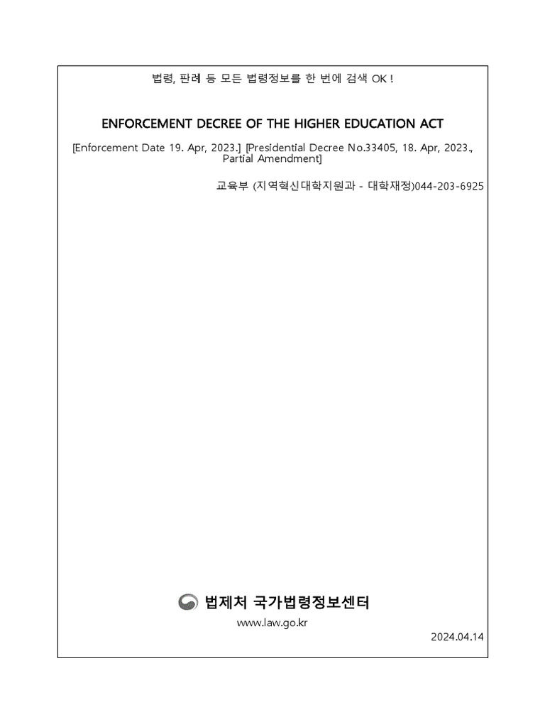 Enforcement Decree of The Higher Education Act PDF Academic Degree