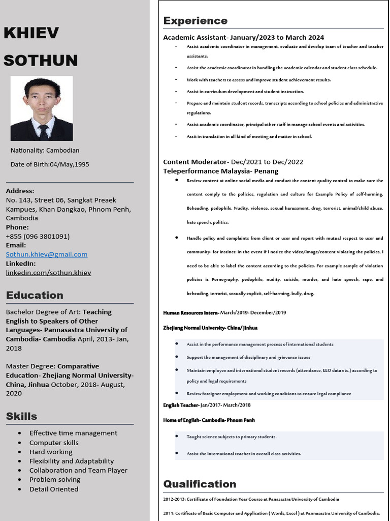 Curriculum Vitae PDF Academic Degree Teachers