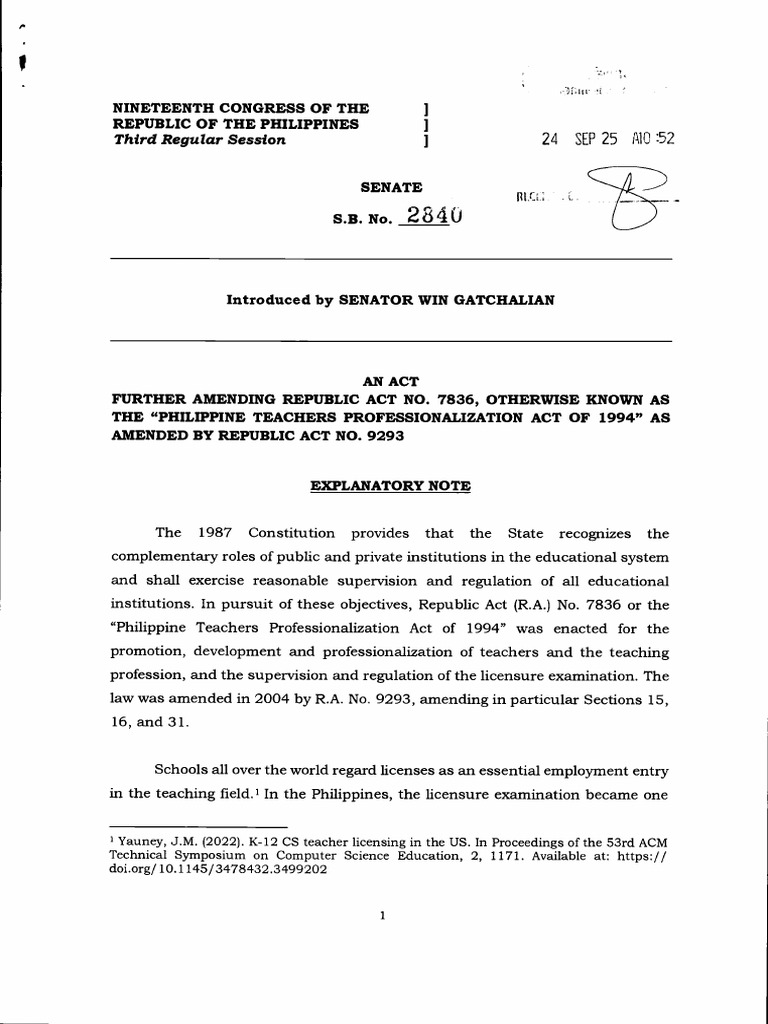 S B No 2840: Third Regular Session PDF Academic Degree Teachers