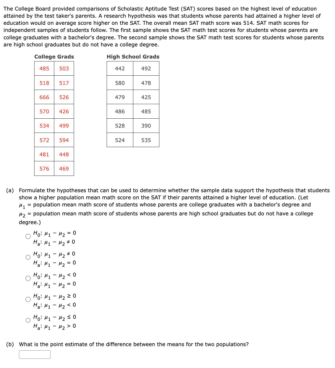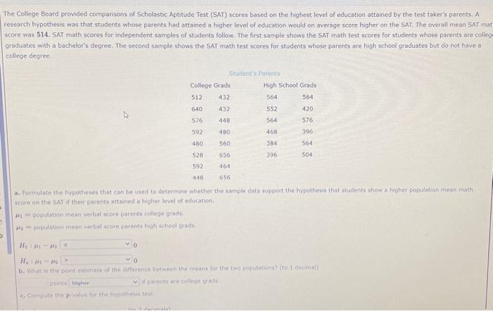 Solved The College Board provided comparisons of Scholastic Chegg com