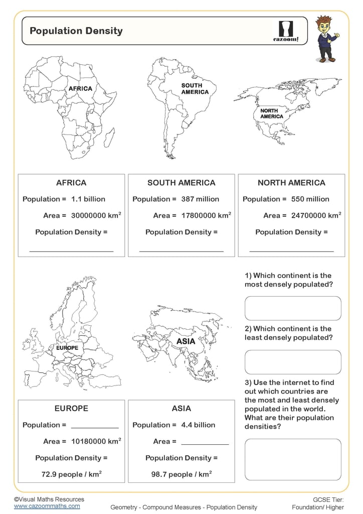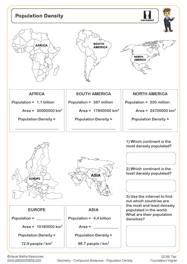 Population Density Worksheet Cazoom Maths Worksheets Worksheets Library