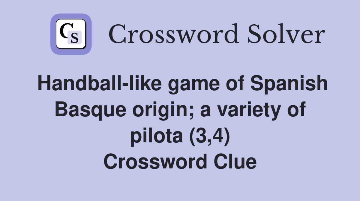 Handball like game of Spanish Basque origin a variety of pilota (3 4