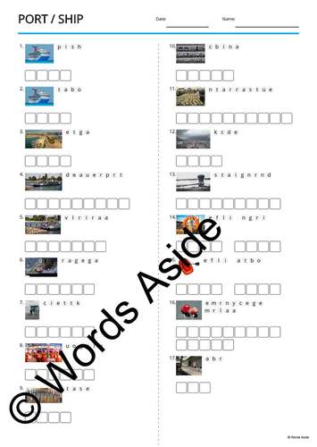 Vocabulary Puzzle Writing Worksheets Crossword Word Search Anagram PORT