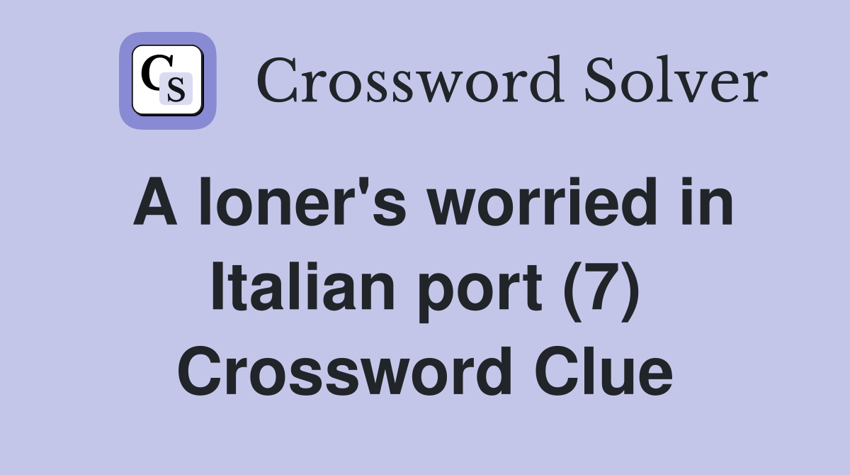 A loner #39 s worried in Italian port (7) Crossword Clue Answers