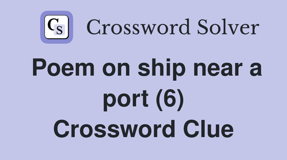 Poem on ship near a port (6) Crossword Clue Answers Crossword Solver
