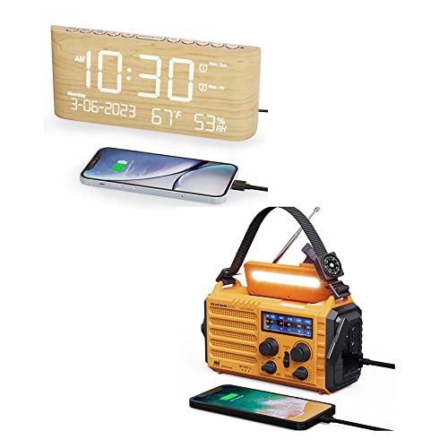 PPLEE Portable Emergency Solar Hand Crank Weather Radio Large Display