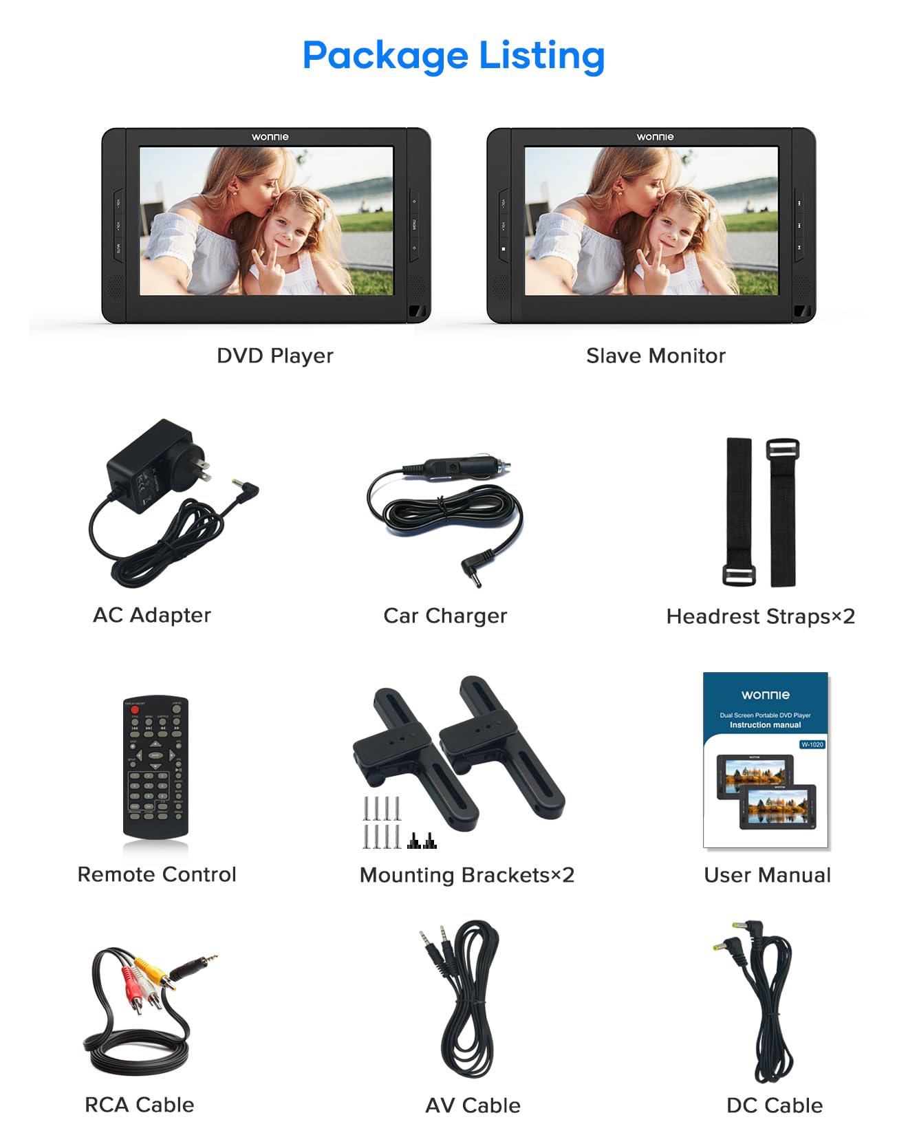 Amazon com: WONNIE 10 5 quot Dual Screen Car DVD Player Portable Headrest