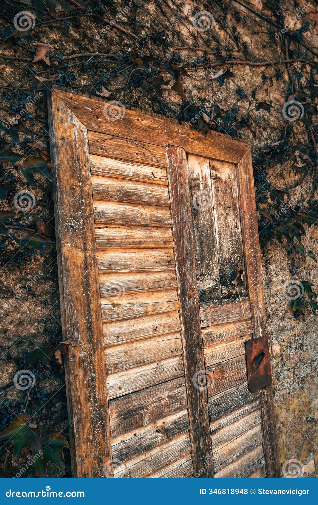 Old Discarded Wooden Door Leaning Against The Brick Wall Royalty Free