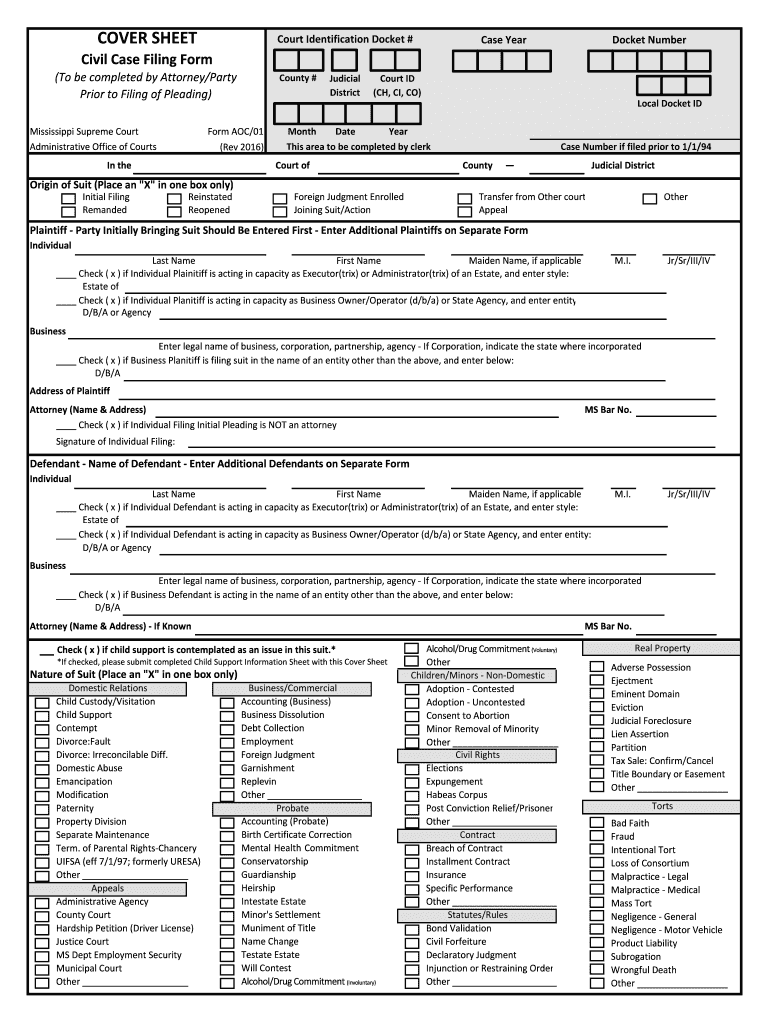 Fillable Online courts ms Court Identification Docket # Fax Email Print