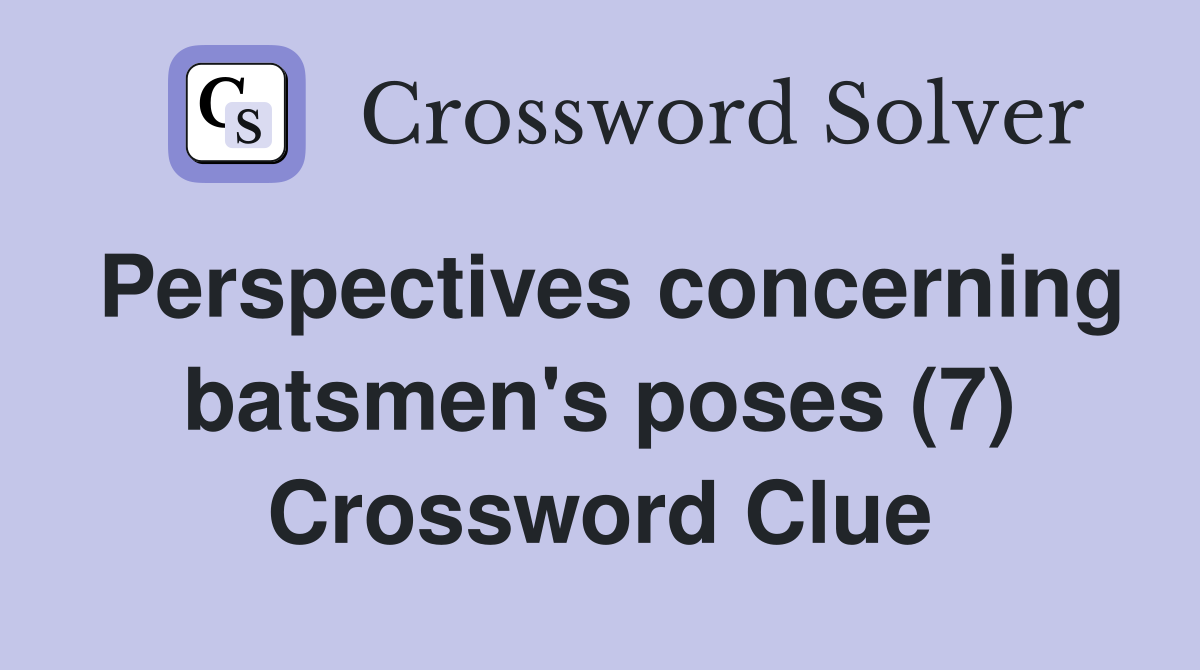Perspectives concerning batsmen s poses (7) Crossword Clue Answers