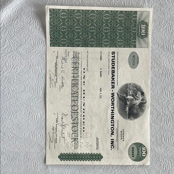 Wall Decor Original Stock Certificate For Studebaker Stock Poshmark