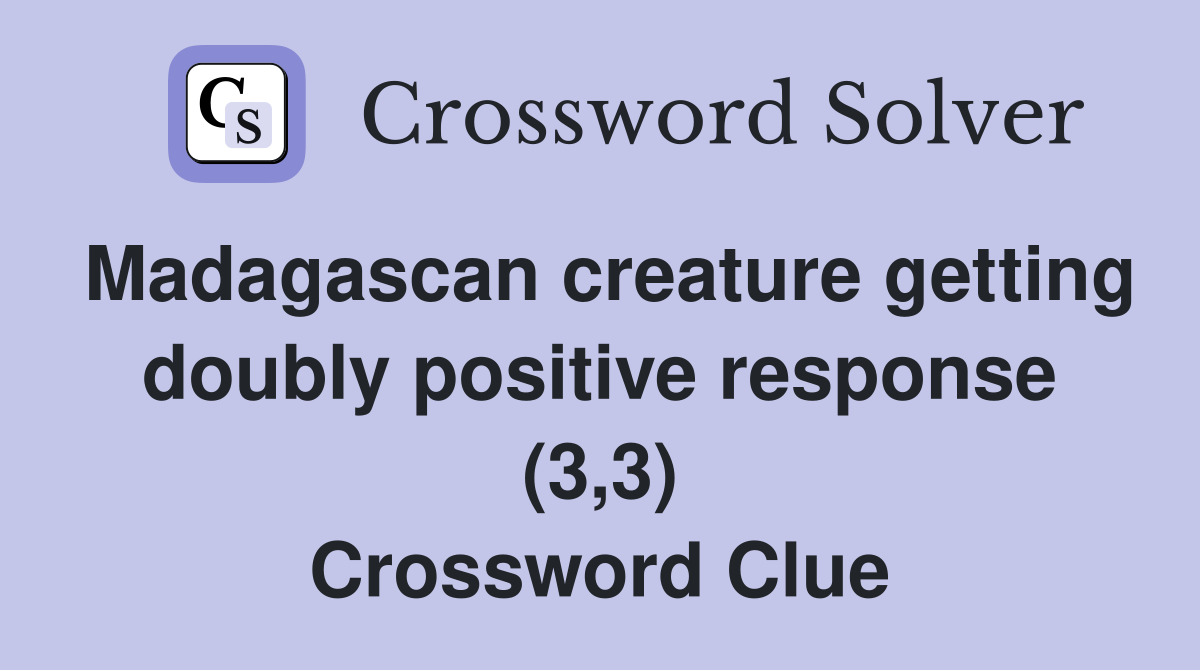 Madagascan creature getting doubly positive response (3 3) Crossword