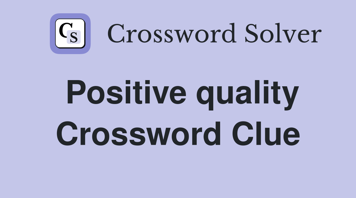 Here are some of the images for Positive Quality Crossword Clue that we found in our website database.