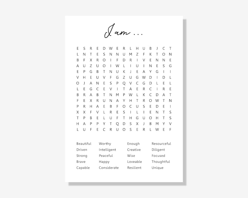 Free Printable Positive Affirmations Word Search Word Search Maker