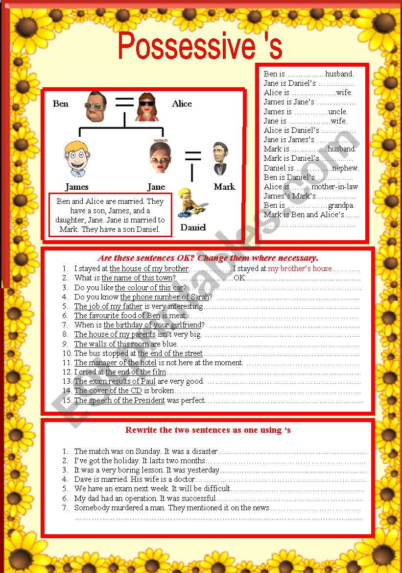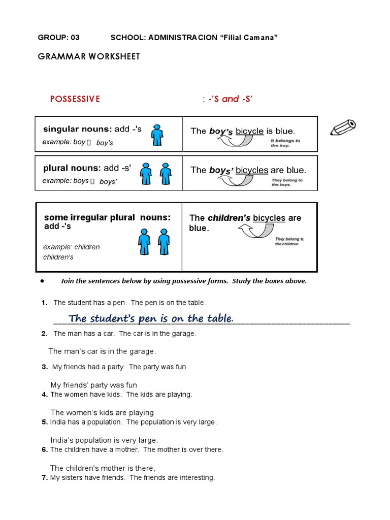 Possessive #39 s general gramma : English ESL worksheets pdf doc