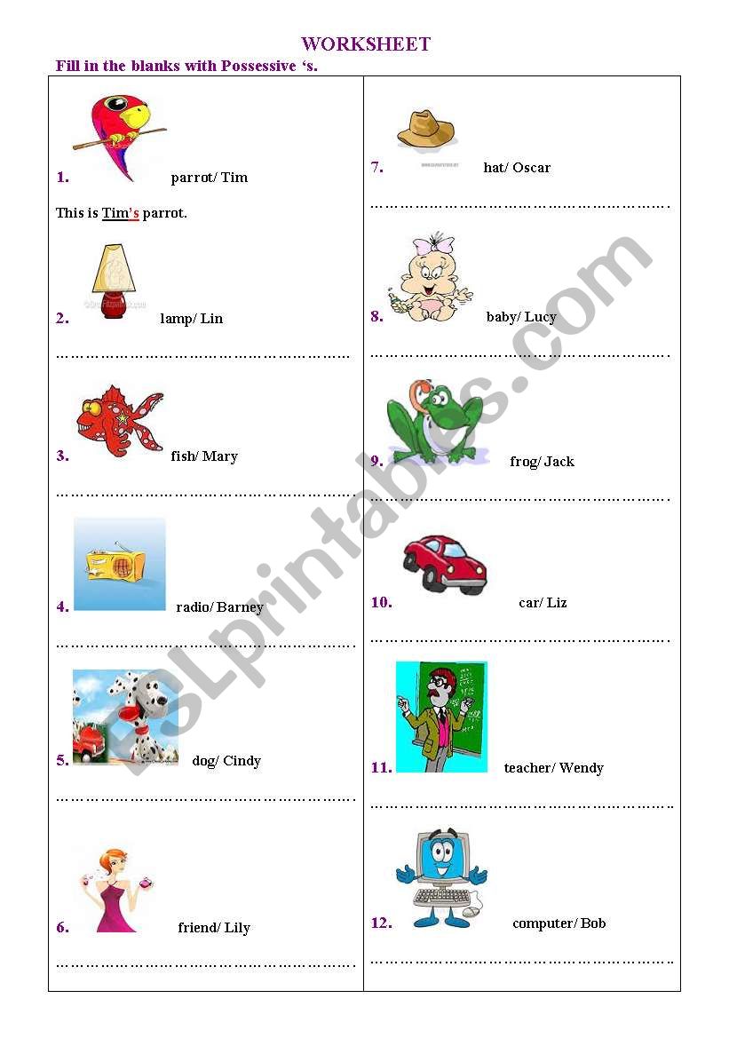 POSSESSIVE ´S ESL worksheet by Pondalesa