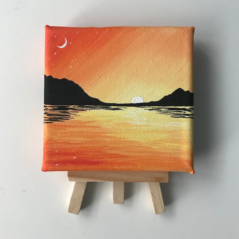 4x4 Mini Canvas Acrylic Painting Orange Fall Sunset // Room Decor