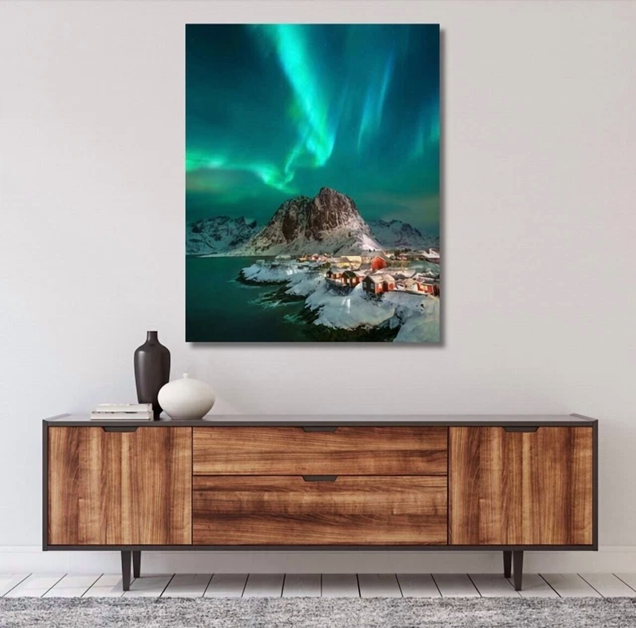 Dopaprint UNFRAMED PAPER POSTER Norway Aurora Borealis Over Red Cabins