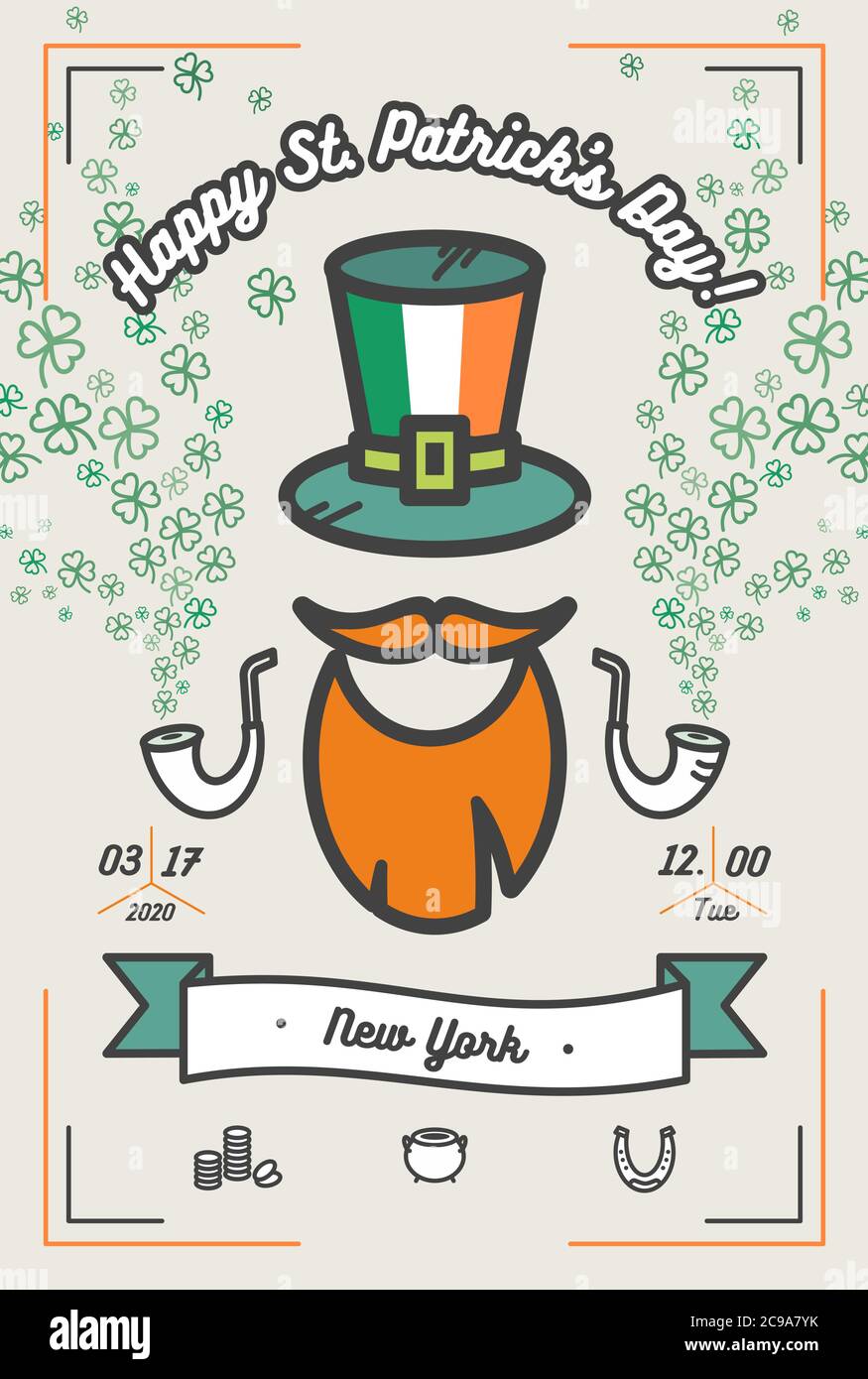 St Patricks day poster Flat vector green orange poster Happy Saint