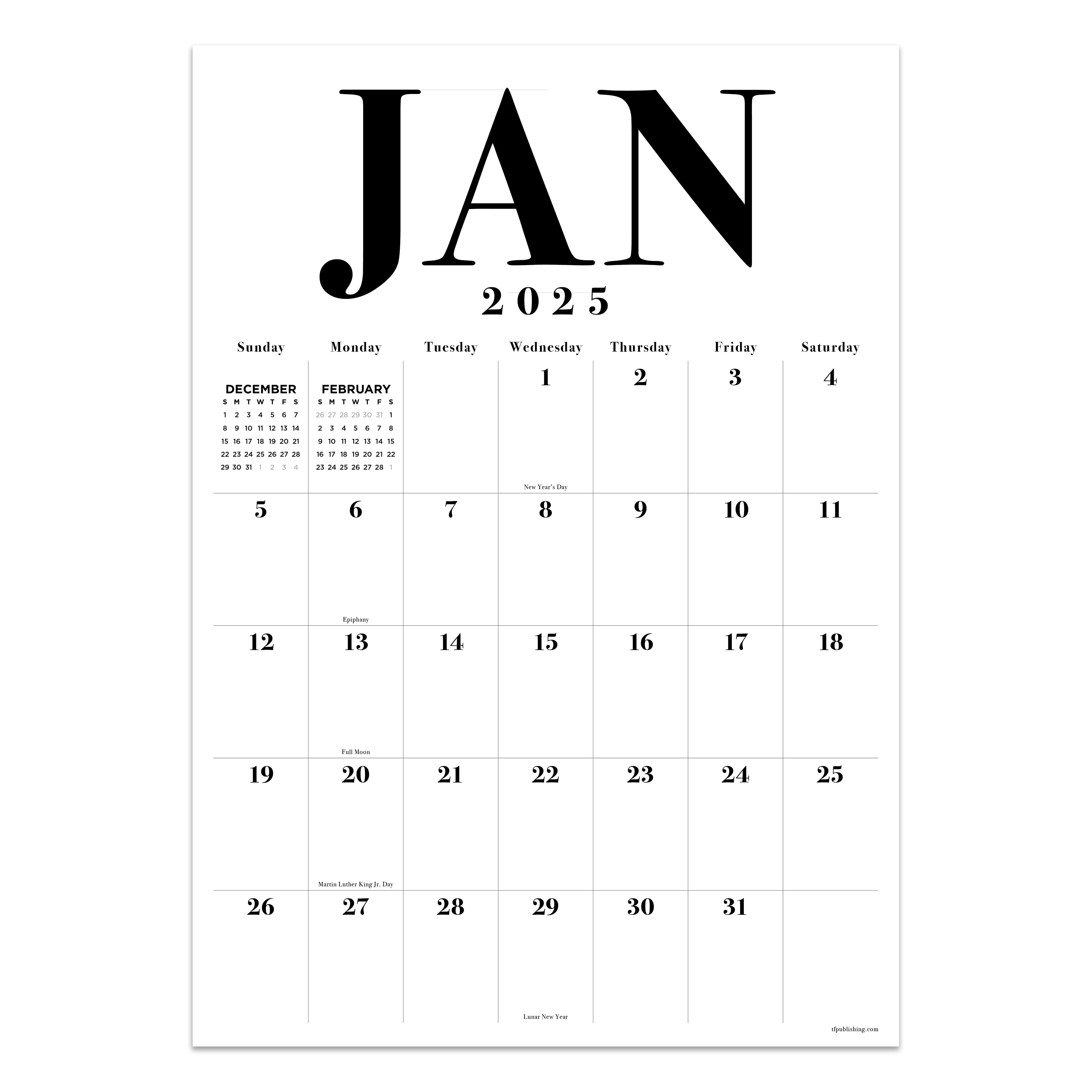 100% Black 2025 Poster Wall Calendar DobsonProducts com