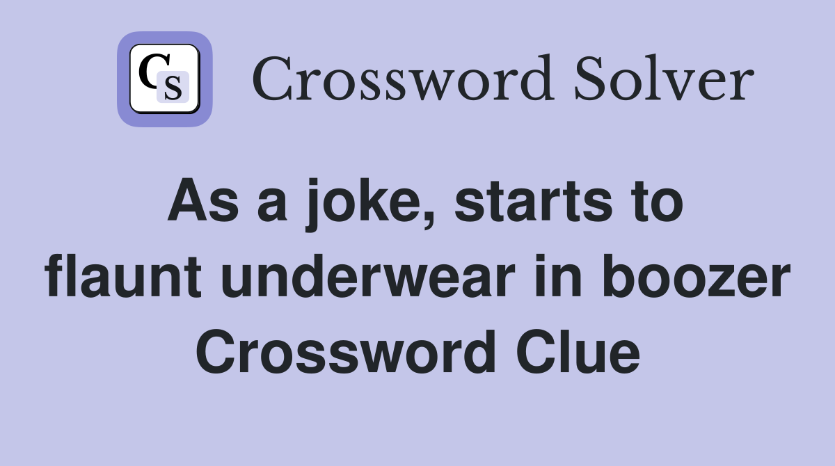 As a joke starts to flaunt underwear in boozer Crossword Clue